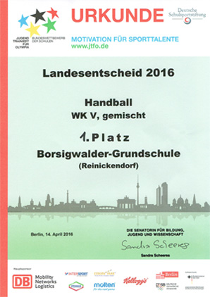 Ergänzend zum Klassenunterricht bieten wir diverse sportliche Neigungsgruppen (Fußball, Handball, Powerball, Tanzen, Frühschwimmen, Ringen und Raufen, Spiel und Sport) an und beteiligen uns rege und regelmäßig an Schulwettkämpfen. Im außerschulischen Bereich arbeiten wir auch klassen- und jahrgangsübergreifend, koedukativ und vereinzelt mit dem VfL Tegel zusammen.